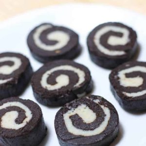 घंटे के बाद फ्रीज़र से रोल बाहर निकले और उन्हें गोल आकार में कटौती करें।