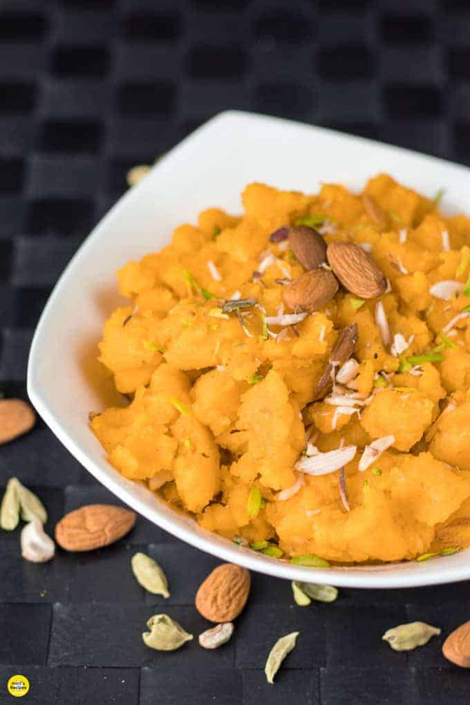 Moong dal halwa is a rich creamy Indian Dessert which is made of split soaked yellow moong dal. This halwa is relished by everybody especially it is the delicacy of Rajasthan. It is usually made in festive occasions like Holi, Diwali, weddings etc.