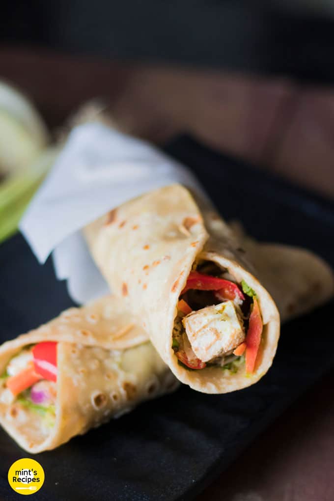 - Paneer kathi roll/ frankies are ready to serve and it’s perfect recipe for kids tiffin box. You can also cut kathi roll into half and serve.