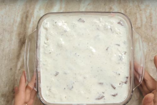Break 5 -6 Oreo cookies with cream by using hands into small chunks or you can also use rolling pin to get some thick chunky cookies for better taste.