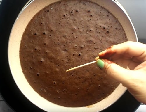 Cover the lid and let the cake bake for 15-20 minutes on low flame.