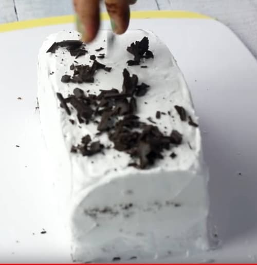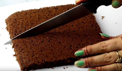 When the cake is completely cooled down cut into a square shape with the help of a sharp knife.