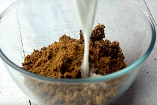 Put biscuit pieces in a jar and grind to make a fine powder.