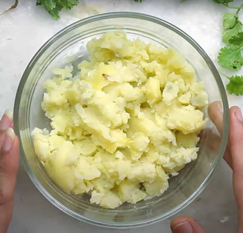 In a mixing bowl, mash the boiled potatoes. Make sure to break down any lumps.