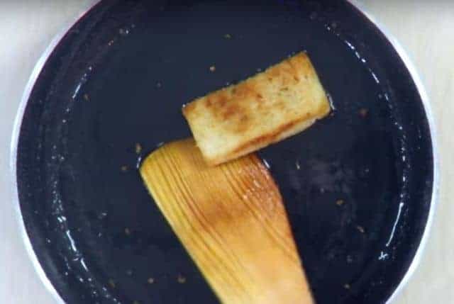 For shallow frying the bread heat 2 tbsp of ghee in a pan, spread it onto the pan and make it slightly hot.