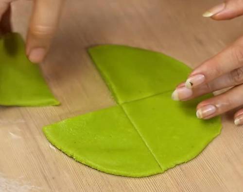 Cut into four triangle with the help of cookie cutter.