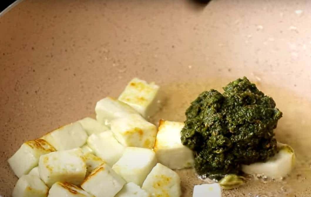 Add paneer pieces and saute for 2-3 minutes on medium flame till it becomes light brown.