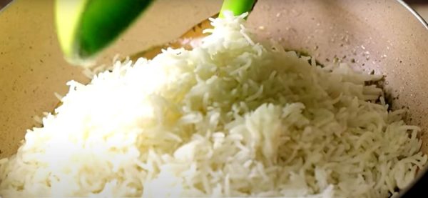 Add 3 cups of cooked basmati rice, salt as per taste and mix it well gently.