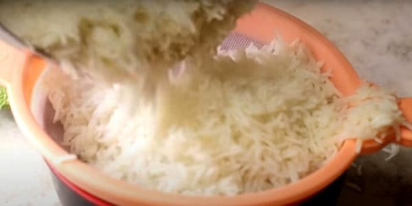 Once rice gets 90% cooked, switch off the flame and immediately strain excess water. Do not over cook rice otherwise it will become mushy while preparing biryani and will not get nice taste.