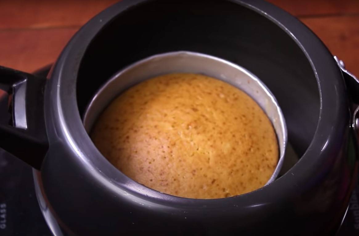 Once properly baked, carefully take the cake tin out of the pressure cooker and let it cool for some time.