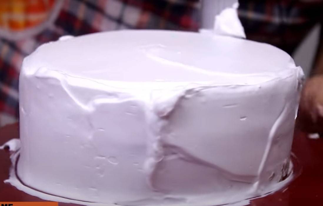 Putting Together The White Forest Cake Frosting On Vanilla Sponge Cake